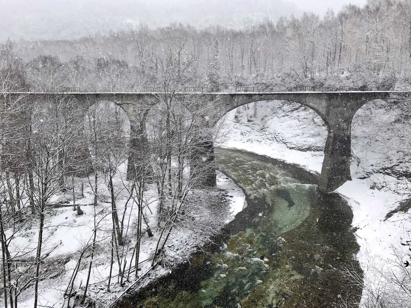 道すがら、昭和初期に作られた旧国鉄士幌線のアーチ橋を見学してゆきます。