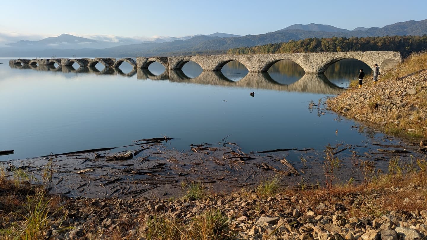 2024.8/1 さらに減水し、橋から湖面が離れました。