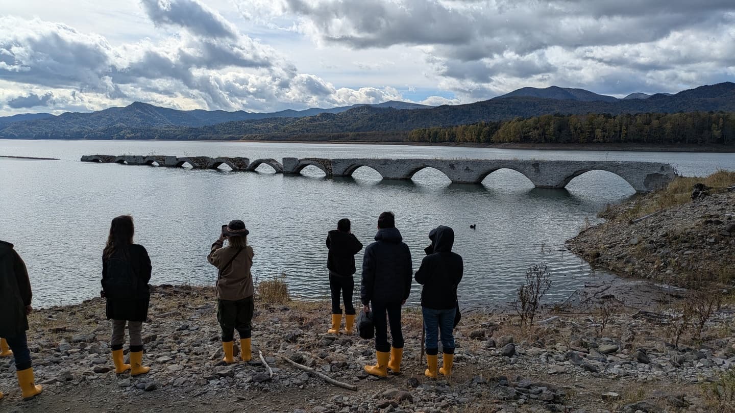 2025.8.12 さらに水位低下、橋が歩いて一周できるようになりました。