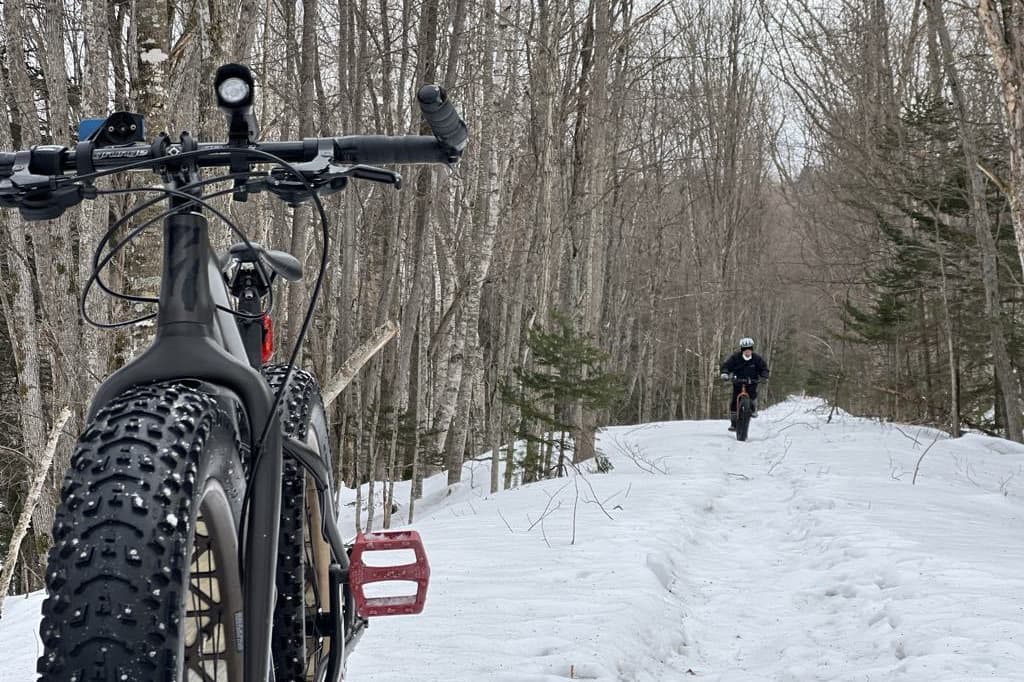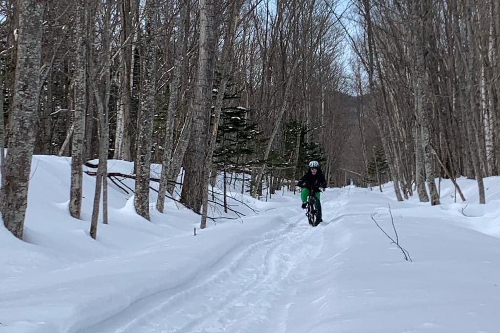 三の沢〜五の沢間をファットバイクで進み、その後、雪の森林をウォーキングします。